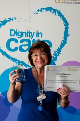 "Diane constantly goes over and above her job role in supporting people and their families following a diagnosis of dementia. She is positive, professional and supportive spending a great deal of time just listening to sufferers and their families; treating them as individuals and very conscious that the impact of this terrible illness impacts on individuals and families in different ways and that the help and support offered has to be tailored to their needs."