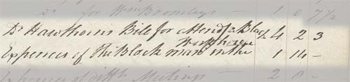 "1817 January 28 : Dr Hawthorn's Bill for Attending a Black £4-2s-3d
