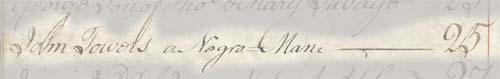 Wolverhampton St Peter baptism register : 25 Jan 1785 "John Towels, a Negro-Man"