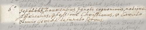 Ashley St John the Baptist general register, burial : 6 April 1668 "Sepultus fuit Laurentius Ignoti cognominis, natione Affricanus, p[re]fessione Christianus, Carolus Domino Gerard defuncto servus"