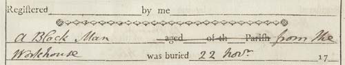Newcastle St Giles burial register : 22 Nov 1807 "a Black man from the workhouse"