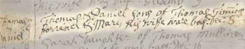 Burial : 17 December 1727 "Daniel son of Thomas Timmins, forriner"