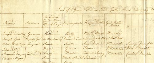 List of the Officers, Soldiers and Castle Slaves belonging to James Fort (now Banjul) in the River Gambia February 19 1766