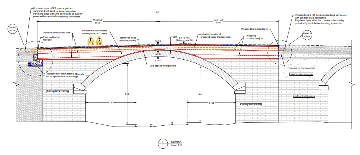 The work will also include additional waterproofing to the concrete saddle to reduce the risk of water causing further deterioration to the brick arch.