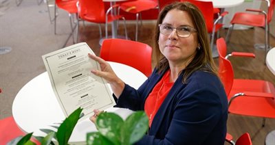 County Cllr Victoria Wilson reading a restaurant menu