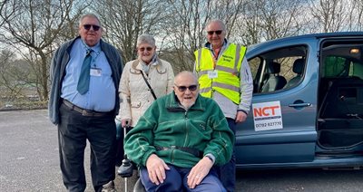 Barry Swift, Chairman of Newcastle Community Transport, Chris and John Yarwood (customers) and Ernie, (Volunteer Driver).