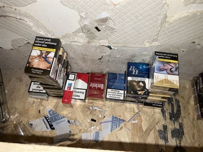 Officers supported by Staffordshire Police and specialist search dogs made the discovery during raids at three premises on Wednesday 4 June. Items with an estimated retail value of £9,294 were seized including 5,460 cigarettes, 2.75kg of hand rolling tobacco and 431 illegal, oversized or banned vapes.