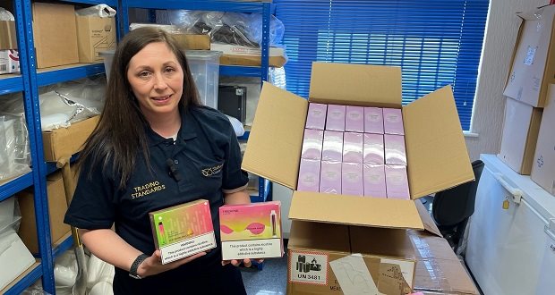 - Illegal vapes, dangerous counterfeit children's toys and thousands of pounds of illicit cigarettes are amongst the items seized by Trading Standards officers in Staffordshire this year.