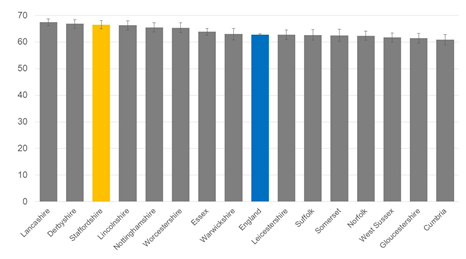 - All Staffordshire CCGs have rates higher than national and East Staffs CCG has the highest rate of admissions in the country.