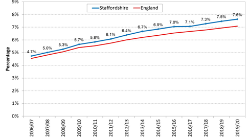 - Prevalence of conditions such as Hypertension, Asthma, Coronary Heart Disease and Stroke in Staffordshire all remain higher than national.