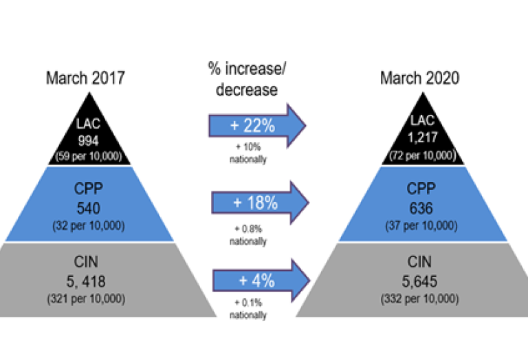 - Despite the recent fall in numbers, since 2016 rates of both Children in Need and Children in our Care levels have been consistently higher than similar authorities.