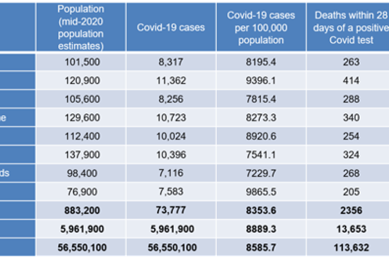 - East Staffordshire has experienced both the highest case rates and mortality rates, even after accounting for differences in the age structure of its population.