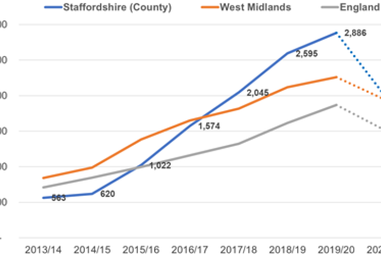 - All Staffordshire CCGs have rates higher than national and East Staffs CCG has the highest rate of admissions in the country.