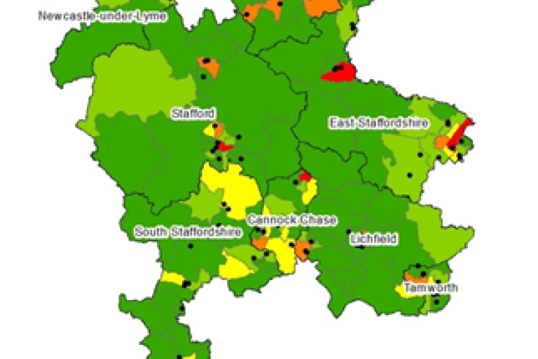 - Whilst the density of fast food outlets (2017) in Staffordshire is similar to national, there are high concentrations in town centres and areas of deprivation - Cannock Chase and East Staffordshire have a higher than average density.