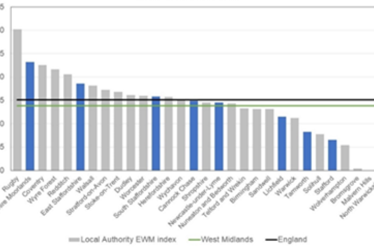 - A slight improvement means there are just two districts falling into the 10 worst performing authorities in the West Midlands. The highest rate is Staffordshire Moorlands (23.2%) ranking second worst in the West Midlands.