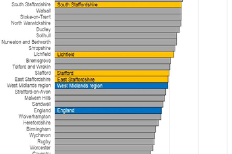- GP registered Diabetes (Type 1 and 2) is higher than national and increasing faster than England. Recorded prevalence of diabetes is higher across all districts except Stafford.