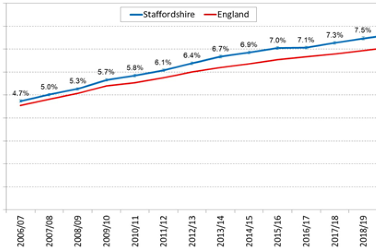 - Prevalence of conditions such as Hypertension, Asthma, Coronary Heart Disease and Stroke in Staffordshire all remain higher than national.